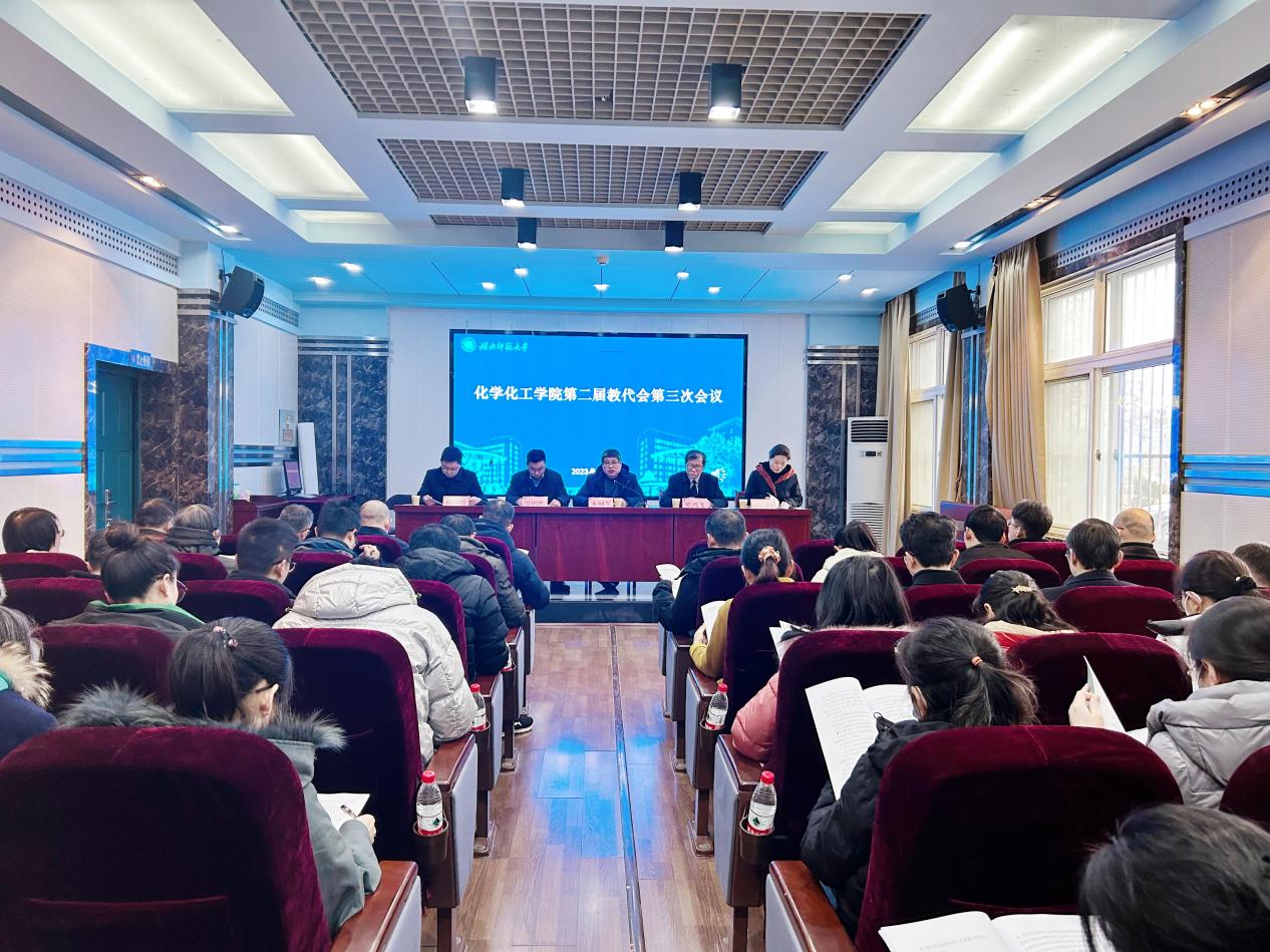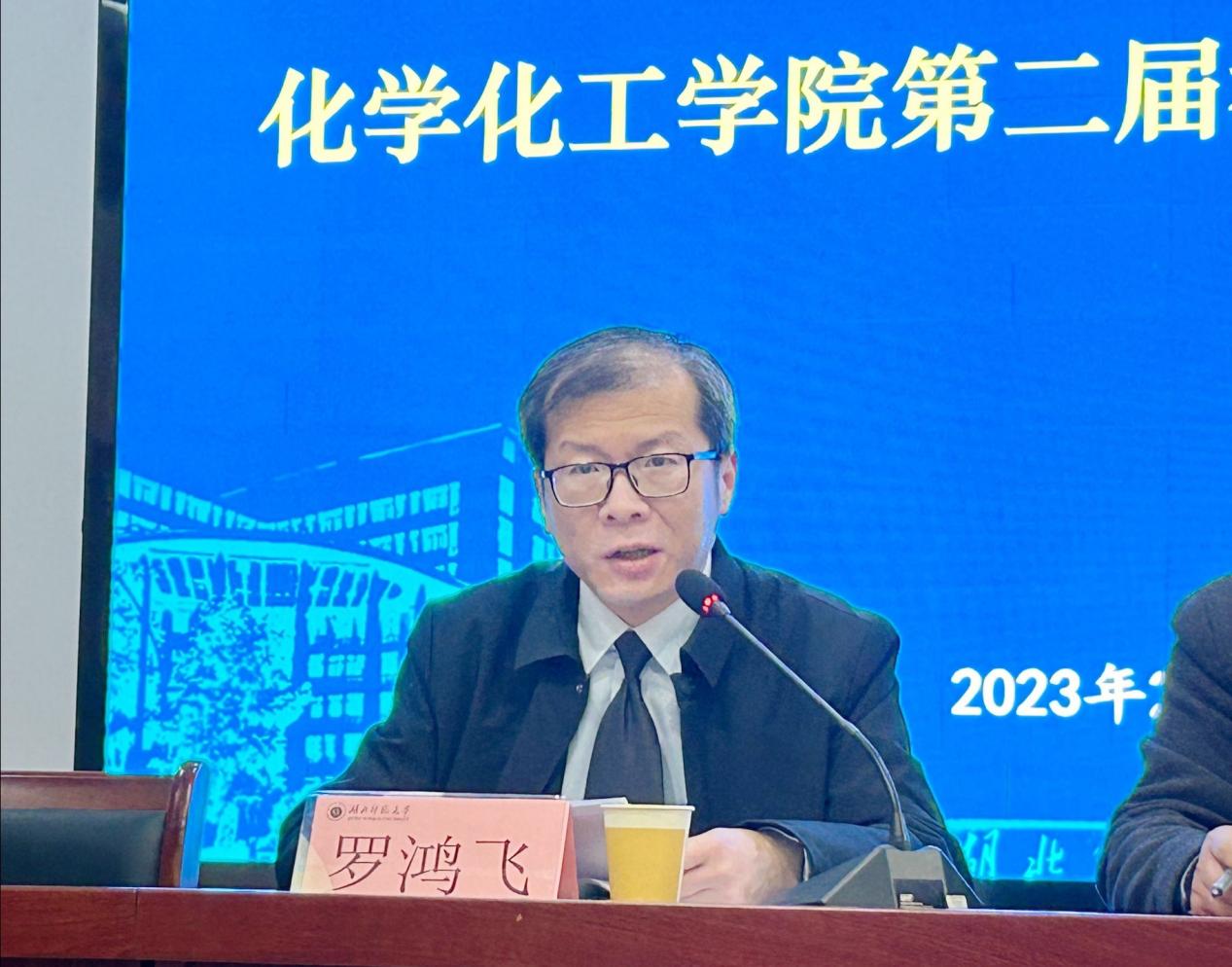 在圆满完成会议各项议程后,罗鸿飞书记发表讲话。他对全体教职工在过去一年的辛勤付出表示衷心感谢,对学院当前面临的形势和存在的不足进行了深入剖析,对提交会议审议的五项制度推出的必要性和预期效果进行了逐条解析。他强调,学院正站在一个十分关键的发展节点,要清醒认识到自身存在的不足,更要团结一心、直面挑战,拿出针对性措施补齐自身短板、做强自身优势。他重点就人才引进、实验楼建设、科研全面突破、专硕点申报四项工作,对今年的工作提出了目标和要求,号召全院师生发扬学院长期形成的“自立自强、追求卓越”光荣传统,踔厉奋发、勇毅前行,为实现全年工作目标、迎接建校五十周年、实现高质量内涵式发展做出化院人新的更大贡献。