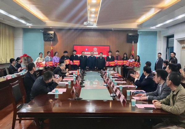 美峰集团旗下子公司、黄石汉微科技有限公司总经理向亚琴校友与校长雷儒金签订共建协议。