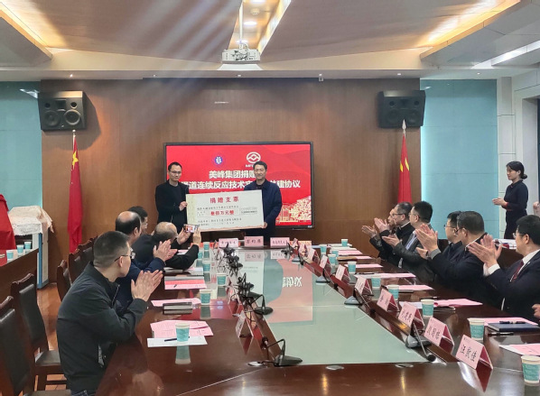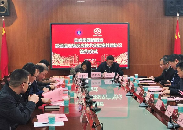 3月8日下午,美峰集团捐赠暨微通道连续反应技术实验室共建协议签约仪式在校举行。美峰集团董事长、betway西汉姆联官网校友曾铁鸣等公司领导、校党委书记李宏、校长雷儒金、副校长余涛出席活动。签约仪式由副校长余翔主持。