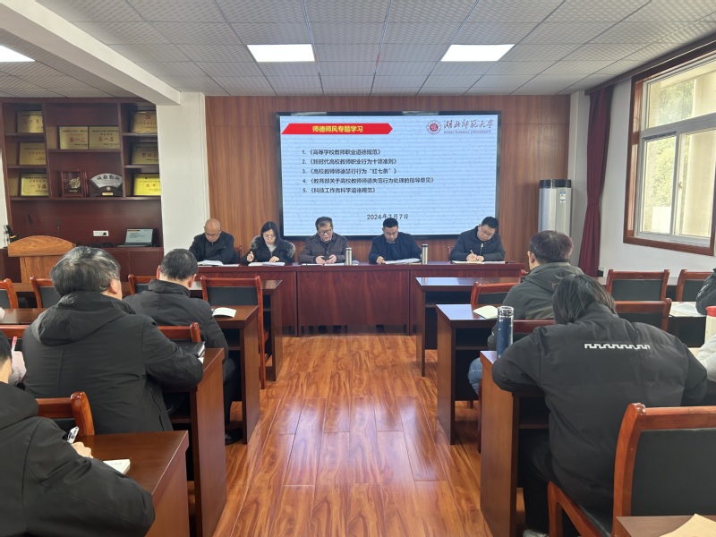 学院高度重视师德师风建设,特意在新学期首次教职工会议上安排了师德师风专题学习。学院领导班子成员依次领学了《高等学校教师职业道德规范》《新时代高校教师职业行为十项准则》《高校教师师德禁行行为“红七条”》《教育部关于高校教师师德失范行为处理的指导意见》《科技工作者科学道德规范》等重要文件精神,传达学习学校关于师德师风建设的工作要求。会议要求,全体教职工要认真落实“四有好老师”“四个引路人”要求,弘扬并践行新时代教育家精神,坚持教书育人,加强自我修养,恪守师德师风“底线”,不逾越禁行“红线”,筑牢思想“防线”,锻造优良师德。罗鸿飞在主持会议时结合有关案例,指出今后我院教职工需要注意的事项,要求全体教师共同努力,树立高尚师德,培养卓越人才,推动师德师风教育走深走实。