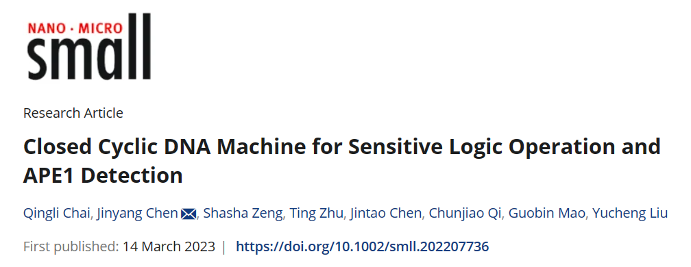 该研究提出了一种基于杂交链式反应和催化发夹组装协同双向激活的全闭环运转DNA机器,并将其应用于高灵敏逻辑运算和分子识别。该DNA机器在信号放大方面具有无需蛋白酶、无副产物,以及可实现高阶指数扩增等优点。通过对输入元素和计算单元的系统设计,该DNA机器能够准确执行经典逻辑门操作,完成“弱输入-强输出”的逻辑运算。此外,以DNA机器为信号扩增核心,集成DNA修复酶(APE1)靶标识别模块,成功建立了一种高灵敏的APE1均相检测新方法,有望为相关肿瘤疾病的早期诊断和预警研究提供新的研究思路和启发。该成果于2023年3月发表于中科院SCI大类一区期刊Small(IF:13.3),2020级硕士研究生柴青丽为论文第一作者,陈金阳副教授为论文通讯作者,湖北师范大学为论文唯一通讯单位。