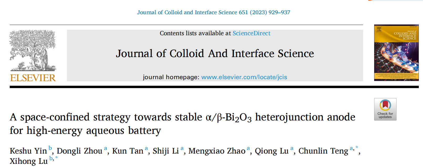 [成果13] 空间限域策略制备α/β-Bi2O3异质结负极运用于高性能水系电池