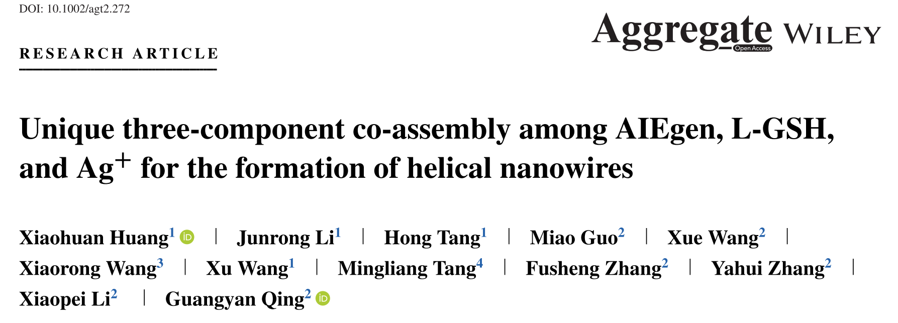 [成果5] AIEgen、L-GSH和Ag+之间独特的三组分共组装诱导螺旋纳米线的形成