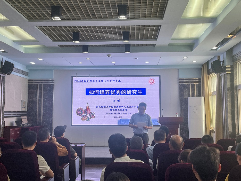 5月16日,学院在省重点实验室学术报告厅组织研究生导师开展专题培训,邀请武汉纺织大学陈嵘教授为全院研究生导师作了主题为“如何培养优秀的研究生”的辅导报告。
