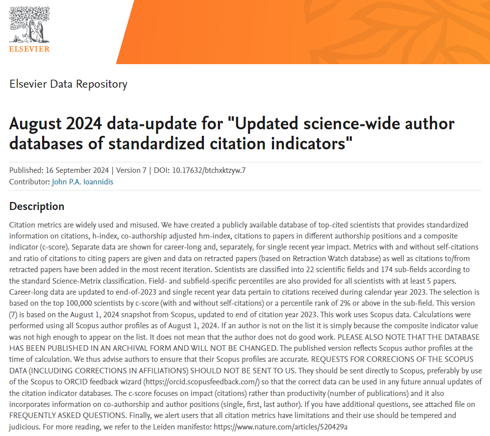 完整榜单请见:https://elsevier.digitalcommonsdata.com/datasets/btchxktzyw/7