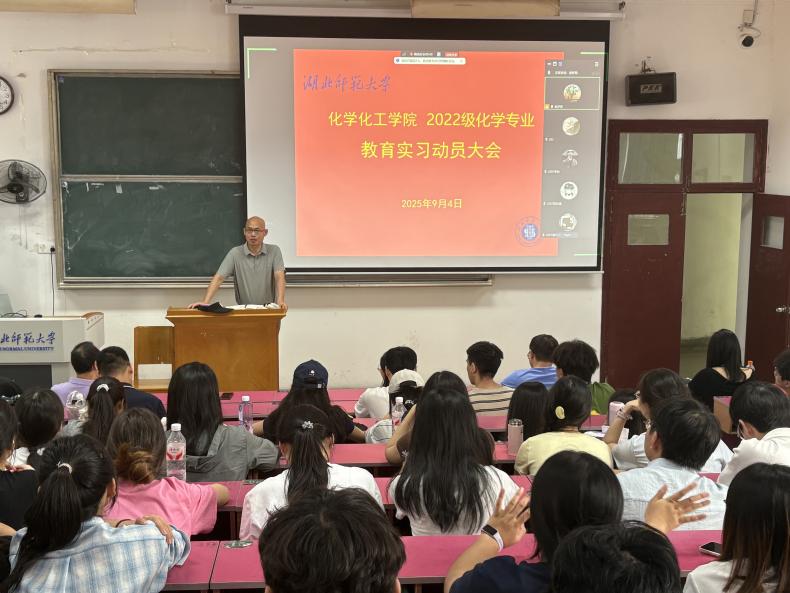 为扎实推进师范生教育实践工作,切实强化育人实效,9月4日,学院在教育大楼阶梯教室举行2022级化学专业教育实习动员大会。院党委副书记汪崇文、副院长周兴旺出席并作动员讲话。