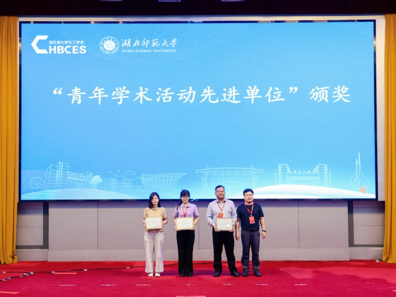 湖北省化学化工学会青年委员会秘书长陈义中为“2025年青年学术活动先进单位”代表颁发奖牌