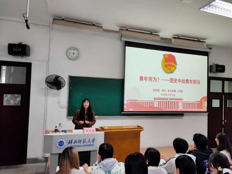 11月16日上午,我校组织部、党校、机关党委王梦茜老师以“青年何为?——团史中的青年担当”为题,在教育大楼1J13教室为团校学员作专题讲座。讲座以张伯苓1935年提出的“爱国三问”开篇,引发学员对青年使命的深入思考。王梦茜系统阐述了中国共产主义青年团作为党领导下的先进青年群团组织、广大青年学习中国特色社会主义和共产主义的学校、党的助手和后备军的性质与定位。通过回顾共青团自1920年上海社会主义青年团成立、1922年召开第一次全国代表大会以来的发展历程,详细梳理了新民主主义革命时期寻求救国真理、社会主义革命和建设时期投身国家建设、改革开放时期探索富国之路以及新时代担当强国重任四个历史阶段中团组织的发展脉络与青年的使命担当。讲座还结合陈怀民、雷锋、黄文秀等不同时期的青年典范,以及2022年“最美大学生”在科技创新、国防教育、社会服务等领域的先进事迹,通过生动的案例展现了共青团组织在党的领导下团结带领一代代青年为民族复兴不懈奋斗的光辉历程,激励当代青年学子传承爱国精神,明确时代责任,以实际行动践行“请党放心,强国有我”的青春誓言。