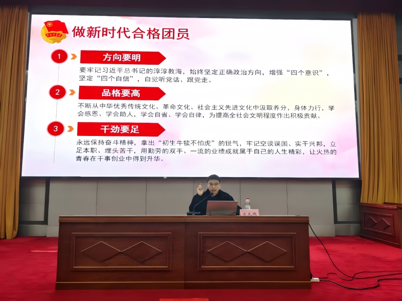 开班仪式结束后,马克思主义学院辅导员方大鹏开启了第一讲授课,他系统梳理了中国共产主义青年团的历史脉络,从1919年五四运动、1920年上海社会主义青年团成立,到1935年“一二·九”抗日救亡运动,强调共青团作为党的助手和先进青年组织的政治定位。他指出,新时代高校共青团员应具备四大核心素养:信念坚定,拥护党的领导,牢记共产主义理想;品学兼优,勤学善思、遵纪守法,在学习与社会活动中发挥模范作用;责任担当,热心服务青年、维护集体利益;自省自强,勇于批评与自我批评,持续进步。同时,团员需树立知团史、晓团情、自立自强、自律慎独、社会竞争和创新发展六种意识,并在政治素养、学习素养、自律素养、协作素养与创新素养五个维度全面提升。