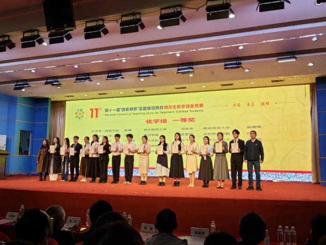 吕璇在第十一届“田家炳杯”全国师范院校师范生教学技能竞赛中荣获化学组一等奖