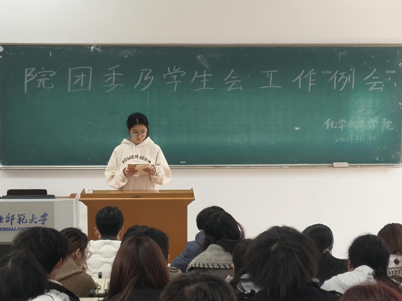 3月12日中午,我院团学组织新学期第一次工作例会在教育大楼1J11教室召开。学院辅导员李海泉、郭先哲出席会议,团学组织全体成员参加。