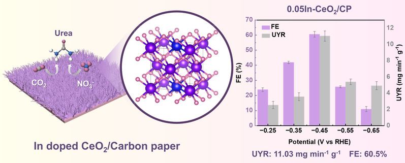 In situ growth of indium-doped cerium oxide for highly selective urea electrosynthesis from nitrate and carbon dioxide