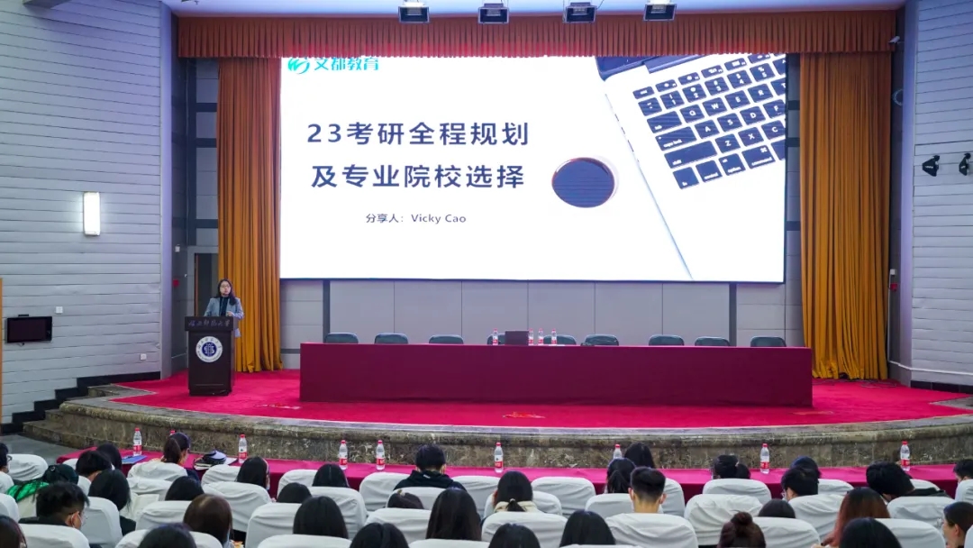 动员大会后,文都教育培训师曹唯其开展了化学专业考研专场讲座,从报考流程、复习科目和院校选择等多方面为同学们答疑解惑。