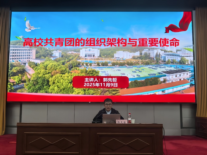郭先哲围绕“高校共青团的组织架构与重要使命”展开系统讲解。培训详细介绍了高校基层团组织的设立依据与组织架构,明确了从支部、总支到基层委员会的设置规范及人员配备要求,强调了团支部在班级治理中的核心作用及其与班委会的一体化运行机制。内容涵盖了团组织在思想引领、实践育人、服务青年、团员发展与管理等方面的重要职责,具体阐释了“三会两制一课”的组织生活制度,并对团旗、团徽、团歌的规范使用进行了说明。此外,培训还结合“第二课堂成绩单”制度、暑期“三下乡”、“返家乡”社会实践、志愿服务、“挑战杯”竞赛等品牌活动,阐述了共青团在实践育人与科技创新方面的具体举措与工作载体,为团学骨干深化认识、提升履职能力提供了系统指导。