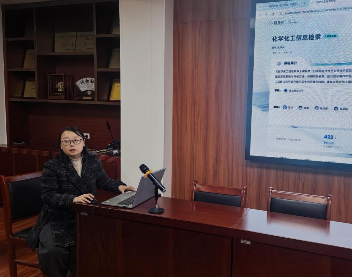 应用化学教研室范玲副教授聚焦AI技术在《化学化工信息检索》智慧课程中的实际应用,系统介绍了AI赋能课前准备、课堂实施、课后反馈及管理的全流程应用场景,详细演示了平台常用AI工具及智能体的操作方法。她结合教学班的实际案例,展示了成绩智能化管理及AI助教的使用技巧,并就学生适配、效果提升等问题进行了生动解答。